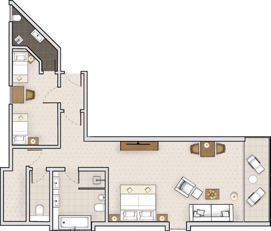 Die kleinen Suiten – unsere Juniorsuiten – eignen sich hervorragend für Paare und Familien, die sich etwas mehr Platz wünschen. Die Juniorsuiten bestehen aus großzügigen Wohn- und Schlafräumen mit schönen Badezimmern sowie größtenteils separaten WC‘s und Ankleidezimmern. Für einen längeren Aufenthalt sind unsere Juniorsuiten ideal. In Größe, Ausstattung und Lage variierend, bieten sie individuellen Komfort und idyllische Ausblicke von großzügigen Balkonen. Ab 5 Übernachtungen bestätigen wir gern Ihre persönliche Präferenz bzgl. Lage und Ausstattung, bei einem Kurzaufenthalt können wir uns nicht auf einen Zimmertyp festlegen.