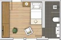 60 m2, Balkon, vollklimatisierter Wohn- Schlafbereich, Dusche, separates WC, im 1. OG Echtholzfußböden, im 2. und 3. OG Kombination Echtholz- und Teppichfußböden