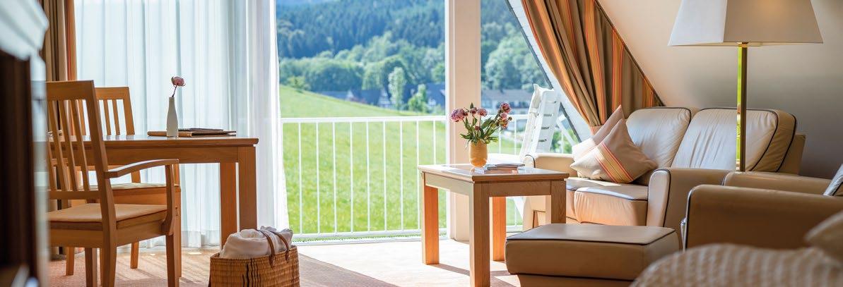 Folgende Juniorsuiten punkten mit gleicher Ausstattung, bieten jedoch einen eingeschränkten Ausblick, sind zum Innenhof oder zum Lennetal hin ausgerichtet.