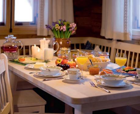 Wir verwöhnen unsere Gäste mit frischen Produkten und Spezialitäten aus der Region. Morgens finden Sie Ihren Frühstückstisch reich gedeckt und können entspannt zu zweit in den Tag starten. Auch das Abendessen serviert Ihnen Ihr Hüttenwirt gerne im eigenen Chalet – vom deftigen Reindlbraten bis hin zum zarten Bachsaibling.