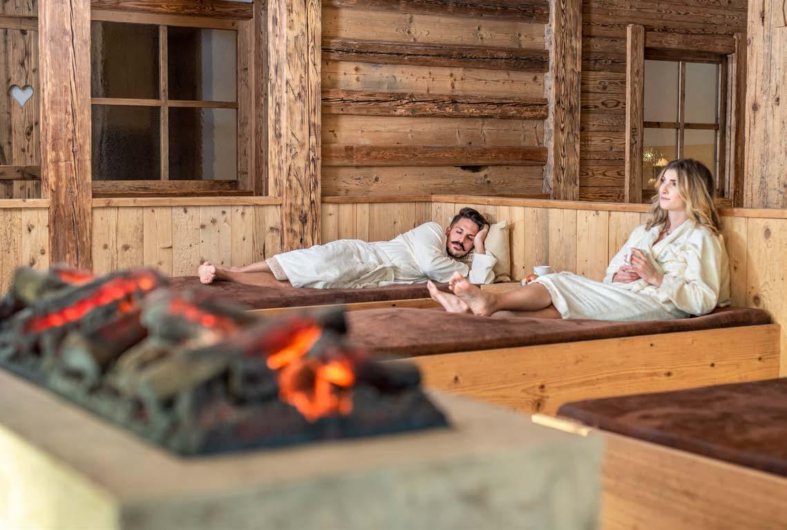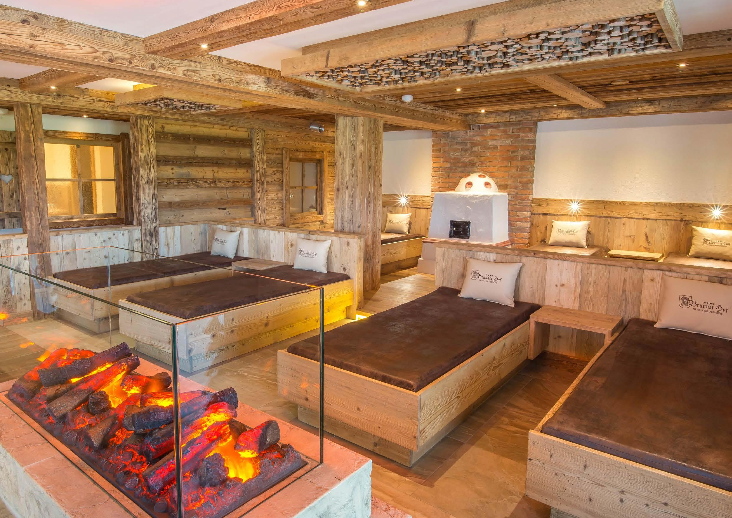 In unserem Panorama-Ruheraum in uriger Stadloptik können Sie bei beruhigendem Wasserplätschern und knisterndem Feuer entspannen und die Seele baumeln lassen. Auf unseren Wasserbetten, Wellness- und Schaukelliegen sowie Kuschelnestern genießen Sie die einzigartige Aussicht auf grüne Wiesen und stille, urige Wälder.