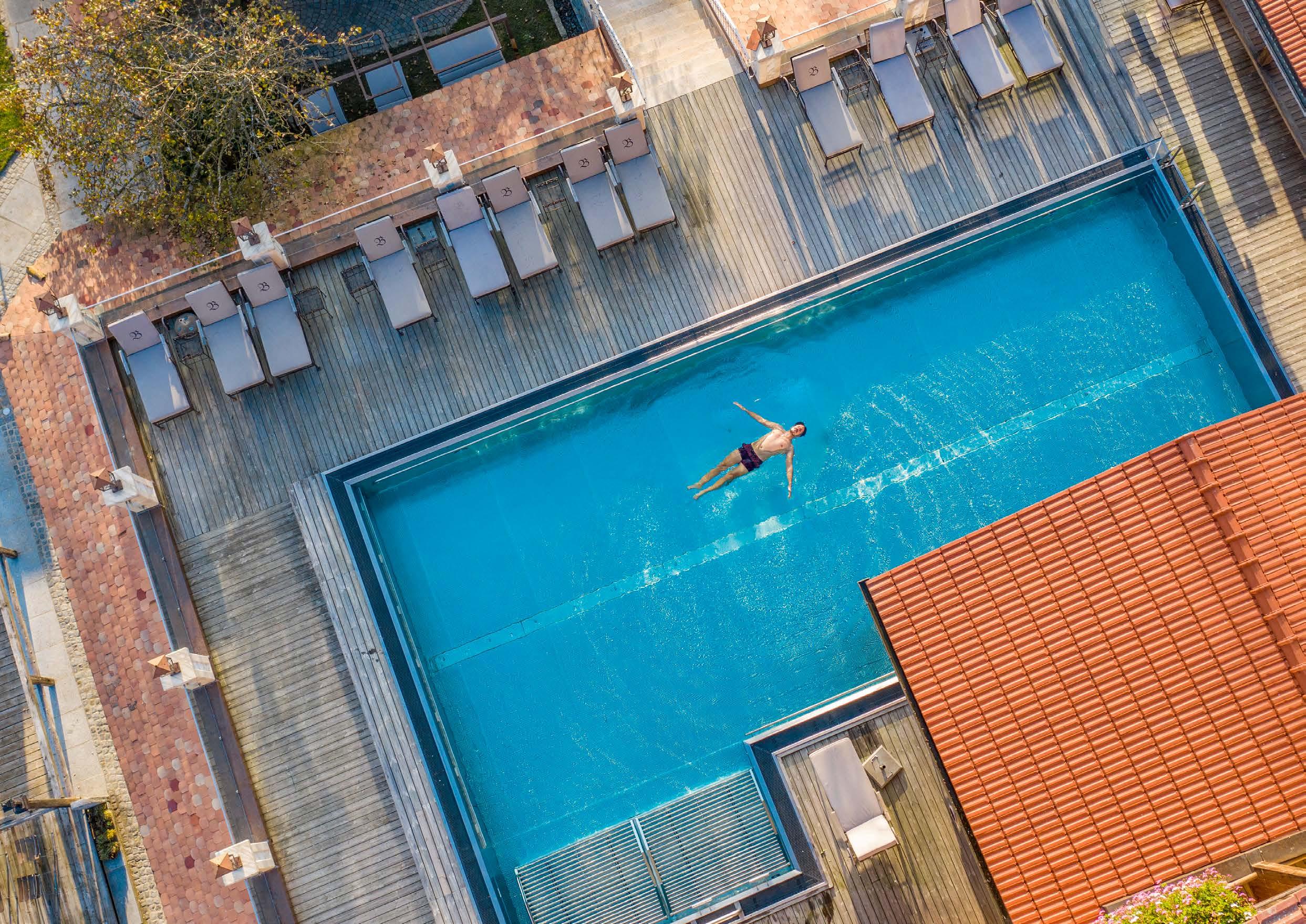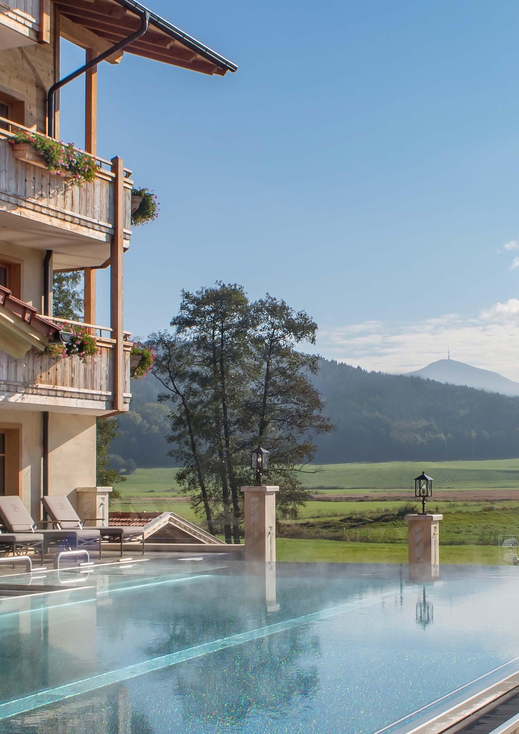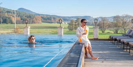 Vergessen Sie den Alltag und ziehen Sie entspannt Ihre Bahnen in unserem Sky-Infinity-Pool mit Whirlliegen (ganzjährig beheizt, Winter 32 °C, 7 x 14 m) und den atemberaubenden Blick in die Natur. Im Sommer können Sie auf der Poolterrasse die Sonnenstrahlen genießen.