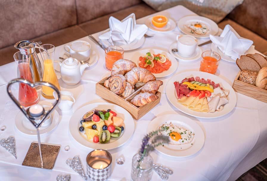 Reichhaltiges Frühstücksbuffet (täglich von 07:30 bis 10:30 Uhr) mit Wurstwaren aus unserem Verbund LandGenuss Bayerwald, Käseauswahl, Eiern aus der Region nach Wunsch für Sie zubereitet, hausgemachten Marmeladen aus Bio-Früchten, heimischen Säften, Teestation mit Bioteque Tee Manufaktur, Kaffeespezialitäten, frischem Obst, hausgemachtem Kuchen, Cornflakes und Müsli Auswahl, Brot, Gebäck und Vollkornprodukte vom Bäcker aus dem Dorf.