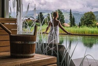 Formen des Fastens an. Mindestens genauso wichtig ist in diesem Bereich auch „Dein Genuss“. Am besten schmeckt Haubers Küche in Verbindung mit kulturellen Leckerbissen wie Konzerten und Naturkino am Berg oder Feste und Feiern am Naturbadesee. Was hier entsteht, ist „Deine Freude“. „Leichte Bewegung ist bei uns besonders einfach umzusetzen“, sagt Eva Hauber, die Gäste regelmäßig auf Schneeschuhtouren und Wanderungen mitnimmt oder sie (nach einem kurzen Spaziergang) zum Bergfrühstück einlädt: „Hier zieht es einfach jeden nach draußen.“ Aktivere betreiben Sport in der Allgäuer Bergwelt oder Schwimmen im großen Sportpool. Wer es ruhiger angehen möchte, findet im Yoga oder beim Waldbaden in sich gekehrt auf einer Matte seinen Platz. Die Frage ist: Wann startet man am besten mit dem „gesund alt werden“? „Genau jetzt“, sagt Eva Hauber. Mit diesem Zeitplan spricht sie der Wissenschaft aus der Seele. „Man kann in jedem Alter etwas tun, wovon man sofort und für den Rest des Lebens profitiert“, sagen Forscher. Was sie nicht wissen: Mit Haubers Wellbeing geht das besonders gut …