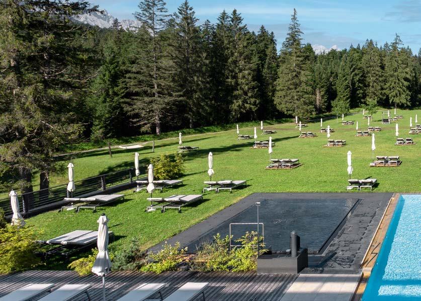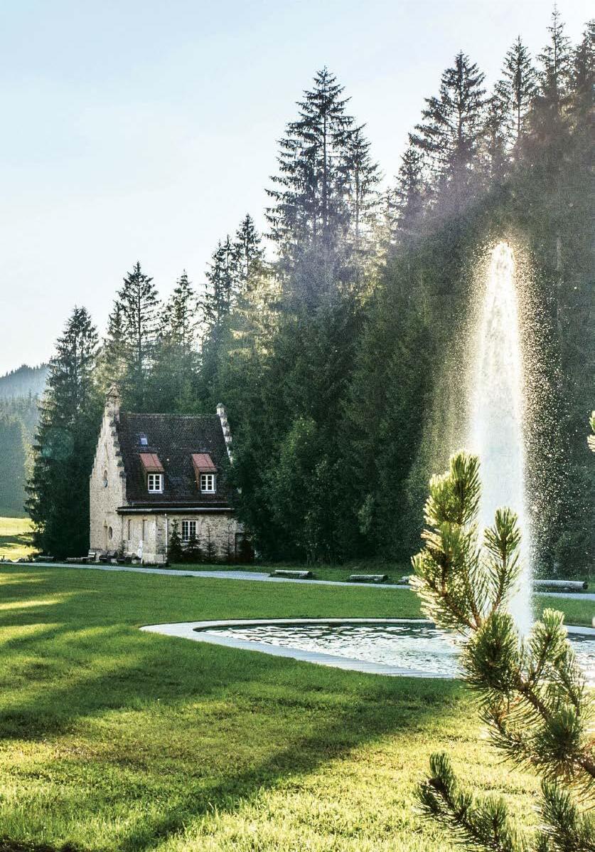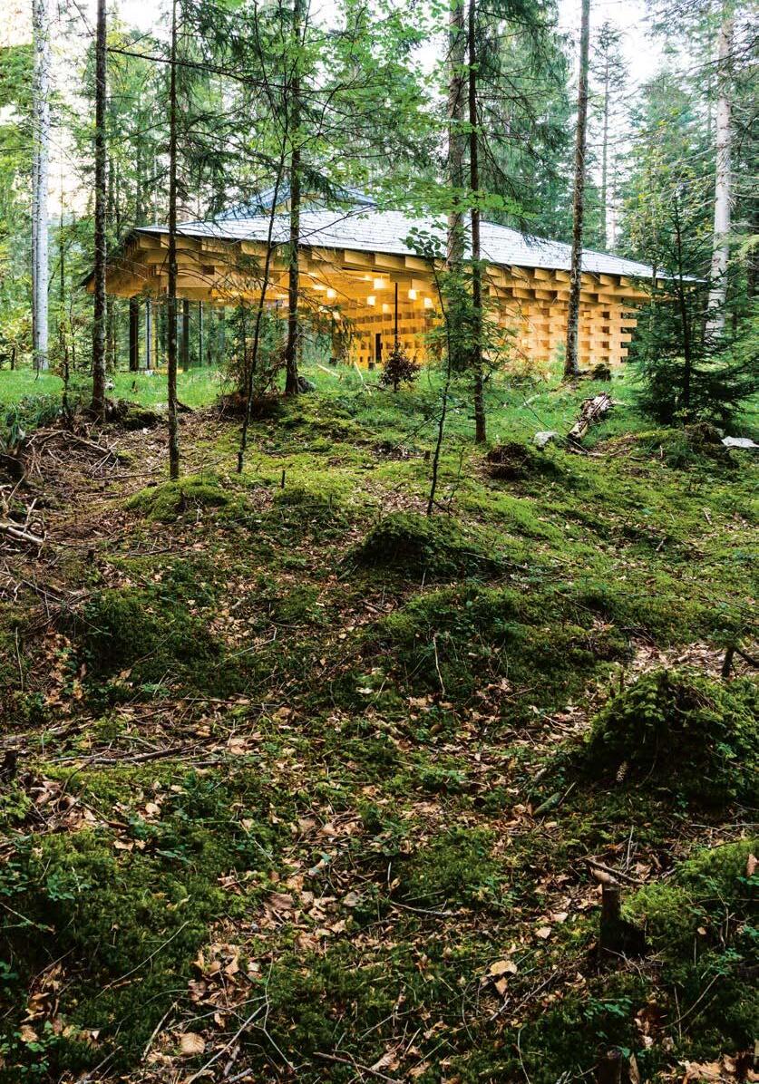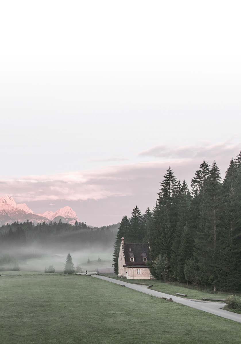 Landschaft und sensiblen Baukunstwerken. Dies lässt sich auch in Deutschland erleben: im Meditation House, der Rückzugsoase des Kranzbach. 200 Meter vom Hotel entfernt liegt dieses architektonische Highlight – als Ort der Stille mitten im Wald. Natürlich wurden auch hier