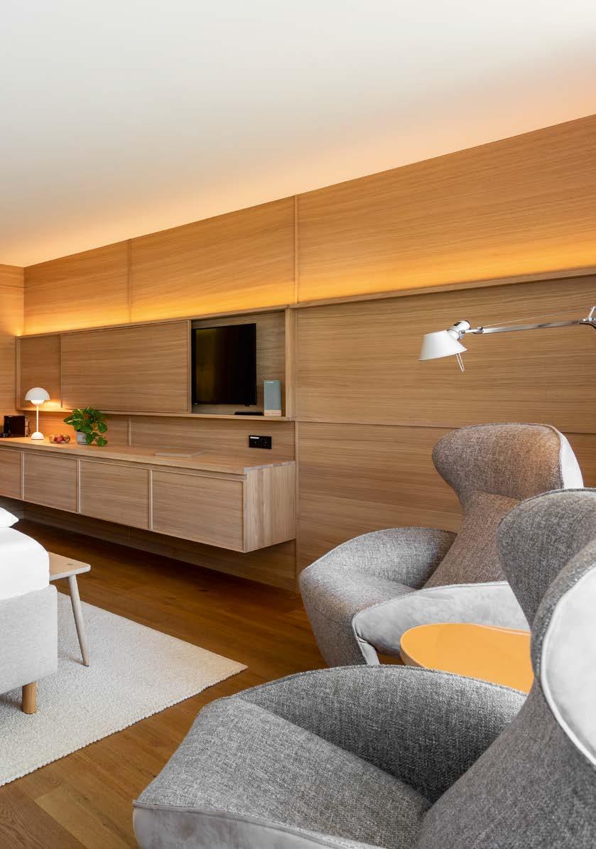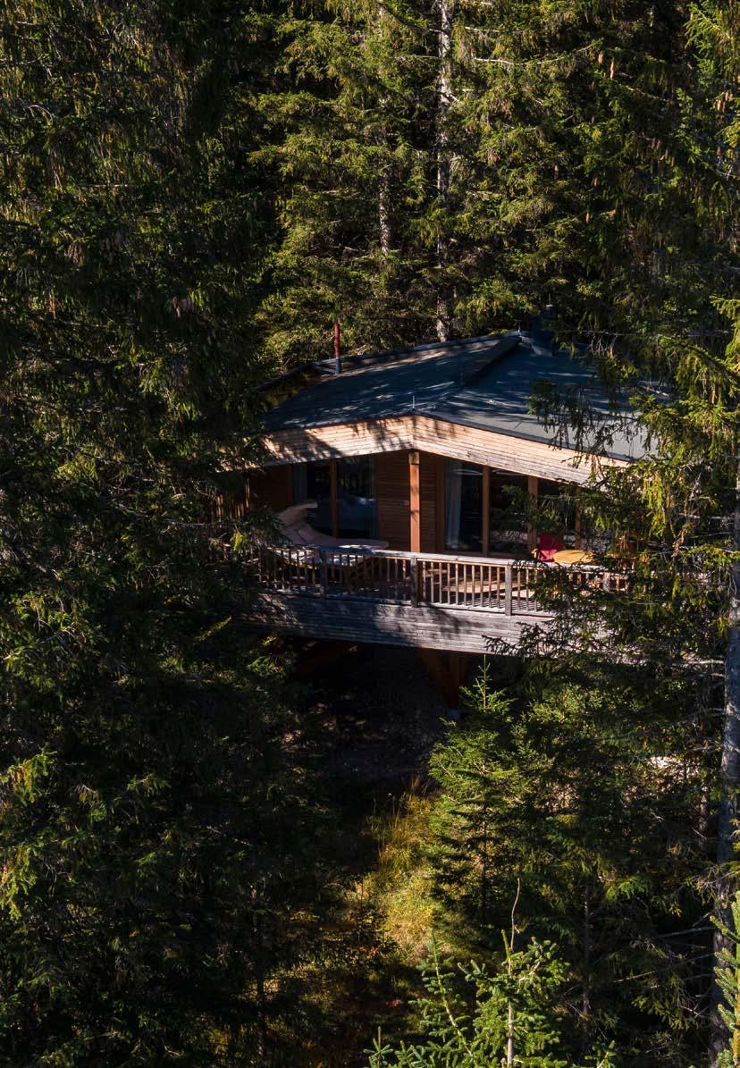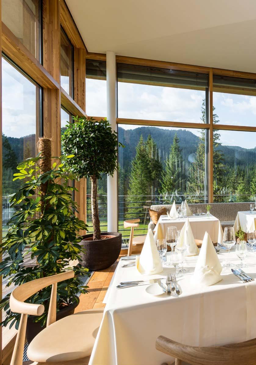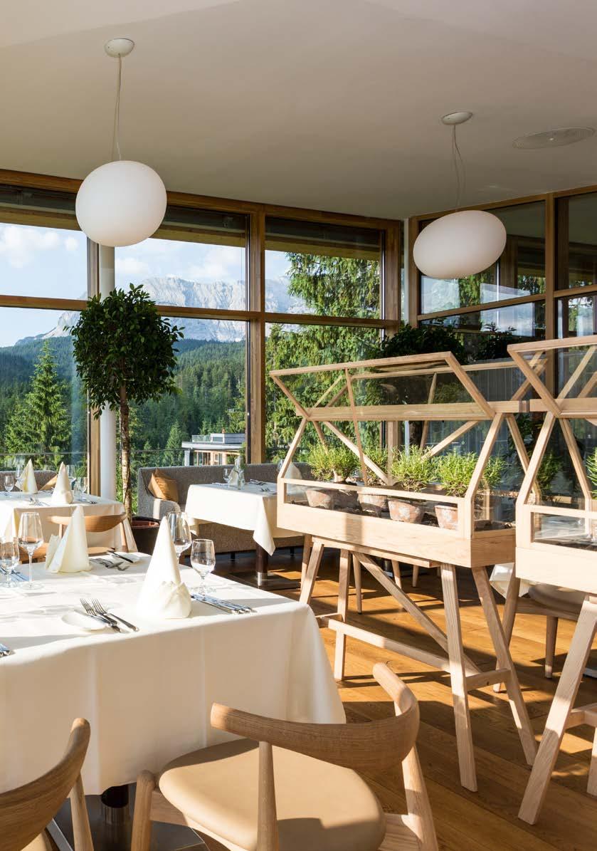 Landschaft und sensiblen Baukunstwerken. Dies lässt sich auch in Deutschland erleben: im Meditation House, der Rückzugsoase des Kranzbach. 200 Meter vom Hotel entfernt liegt dieses architektonische Highlight – als Ort der Stille mitten im Wald. Natürlich wurden auch hier