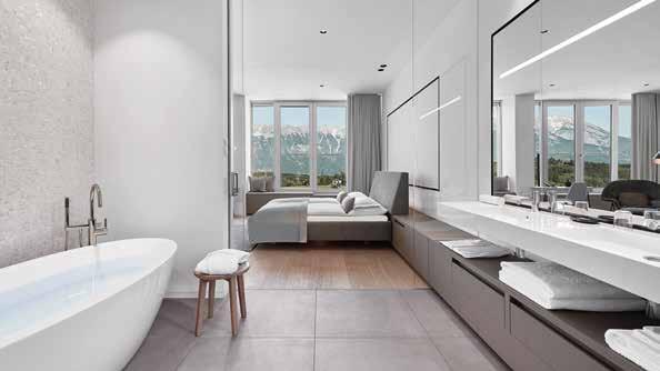 Sehr großzügiges Appartement für 2 Personen, ca. 70 m2, nordseitig mit herrlichem Ausblick auf die Berge. Offener Schlaf-, Wohn- und Badebereich mit Sofa, Schreibtisch, begehbarem Kleiderschrank. Frei- stehende Badewanne, Dusche, Doppelwaschbecken und WC getrennt. Elektrosmog-Freischaltung.