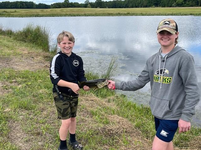 Dads Lowndes Peple and Peyton Studebaker not only helped servce BBQ for dinner, they caught fish!