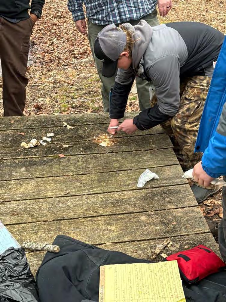 Special thanks to Committee Members Dave Stock and Sonny Fleming for covering the basics of Wilderness Survival Merit Badge, including starting a fire without matches.