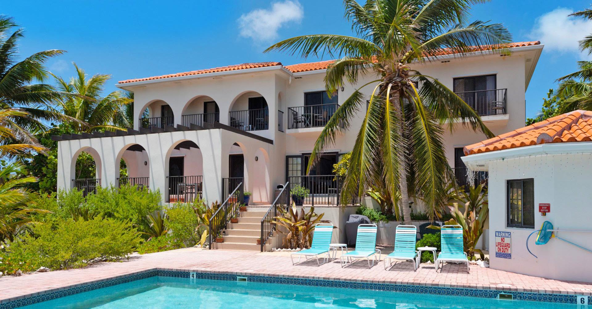One of the most popular properties on Seven Mile Beach. 2nd floor with views across lush gardens to the pure white sand beach & crystal-clear Sea.