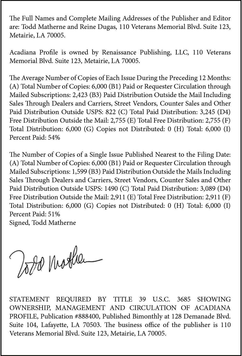 Chief Executive Officer Todd Matherne For Subscriptions Call 877-221-3512