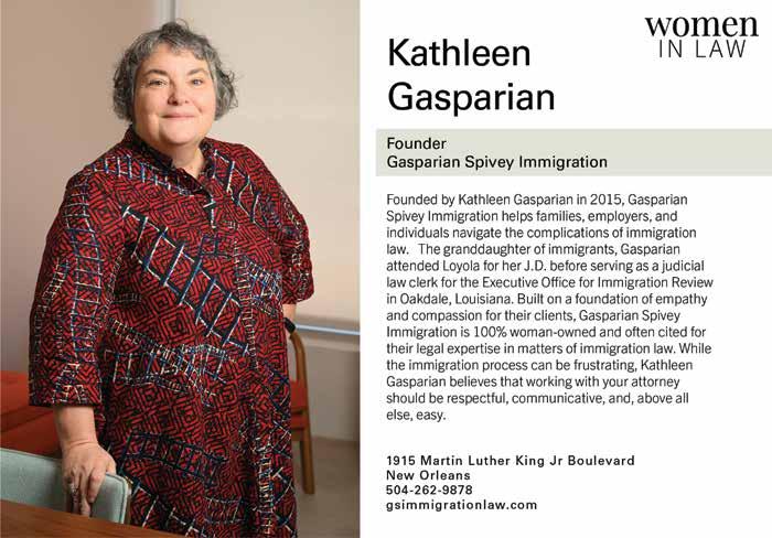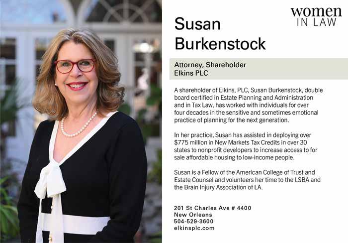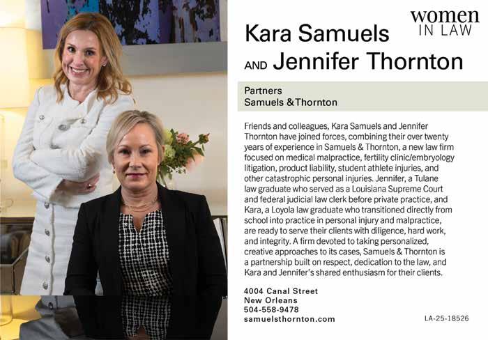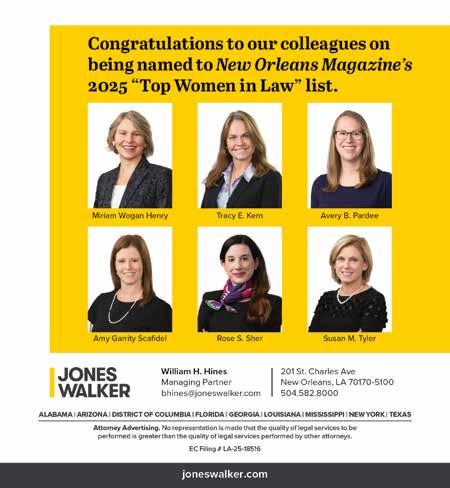 This month we highlight some of the top women in law across the area, but you can always find our updated list of top lawyers on our website, myneworleans. com. It’s a great resource for connecting with the right person for your needs.