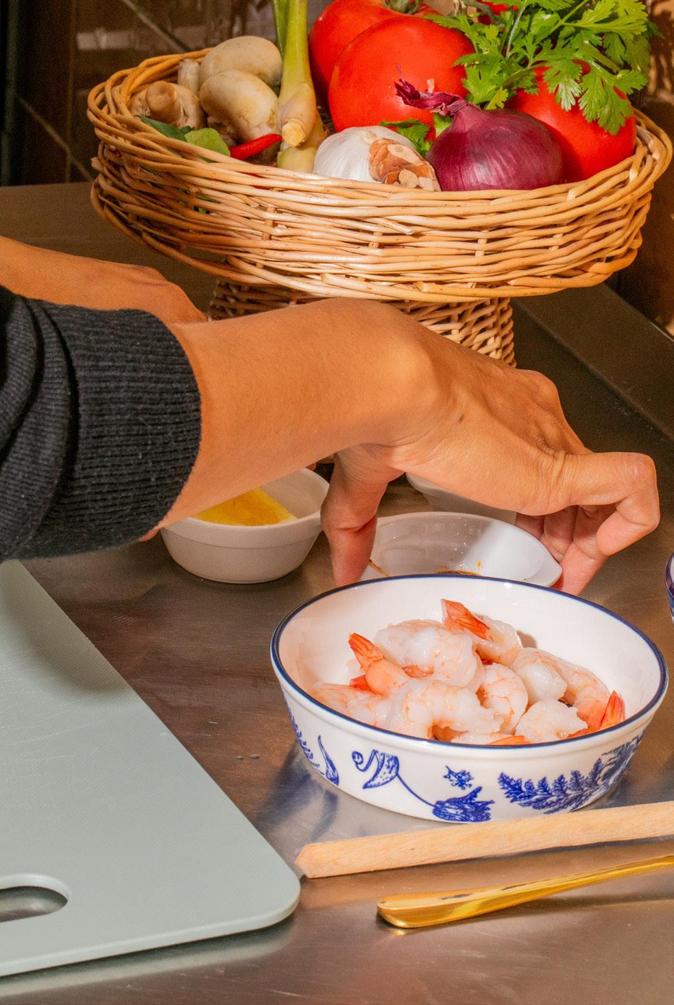 Chilled Summer Bisque with Shrimp Salad & Chive Oil