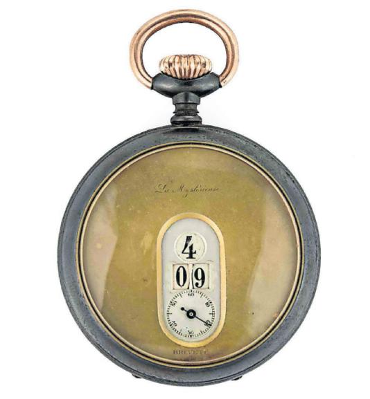 The “jump hour” watch, which displayed the hour and minute as discrete digits, was invented in 1883. (JEFFREY S. EVANS & ASSOCIATES)