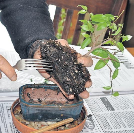 through a quarter-inch sieve. What I’ve described is basic maintenance of a fairly simple bonsai. In my book, The Pruning Book, I devote a whole chapter to bonsai, from starting a new plant, to training, and to maintenance. Quoting from my book, The Pruning Book, “More than a ladder marks the difference[s] in technique . . . from a bonsai as compared with a fullsize tree.” Gouging out where a large cut is made in order to create a slight hollow or wiring limbs to force them to bend a certain way are some of the details covered.