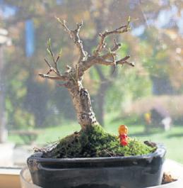The tree, if I may call a fourinch-high plant a “tree,” began life here as one of a clump of what evidently were rooted cuttings in a small, plastic pot I purchased on impulse from a big box store. Back here at the farmden, I got to work on it, first teasing the plants apart from each other, selecting one as keeper.