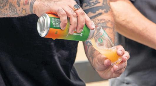 A guest enjoys a cold beer from White Lion Brewing Co. at the opening of “Pridelands on Mane Street” in Tower Square Park on July 9. The outdoor beer garden, which is open on Wednesdays and Thursdays all summer long, will offer live music in the form of Salsa Brava tonight. (ASHLEY POTTER / THE REPUBLICAN)