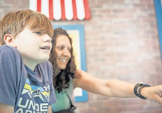 Logan, 13, and his mother Christina Dutoit use the interactive displays at the Dr. Suess Museum during the museum’s summer activities earlier this month. (DOUGLAS HOOK / THE REPUBLICAN)