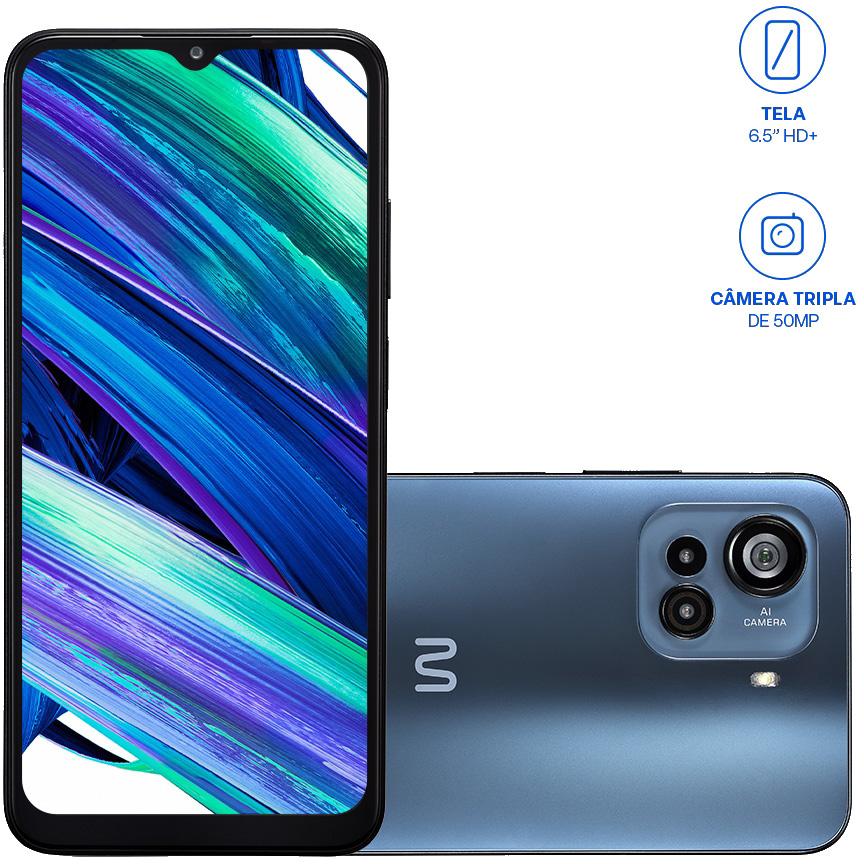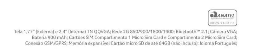 Conteúdo da Embalagem Smartphone, carregador, manual de instruções, case transparente, e película