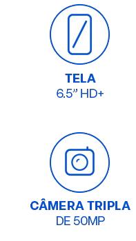 Tela HD+ de 6,5” com taxa de atualização de 90 Hz
