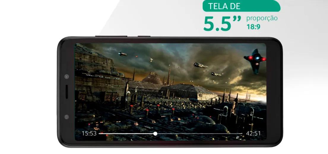Tela Imersiva: LCD de 5.5” FWVGA+ para uma experiência visual envolvente.