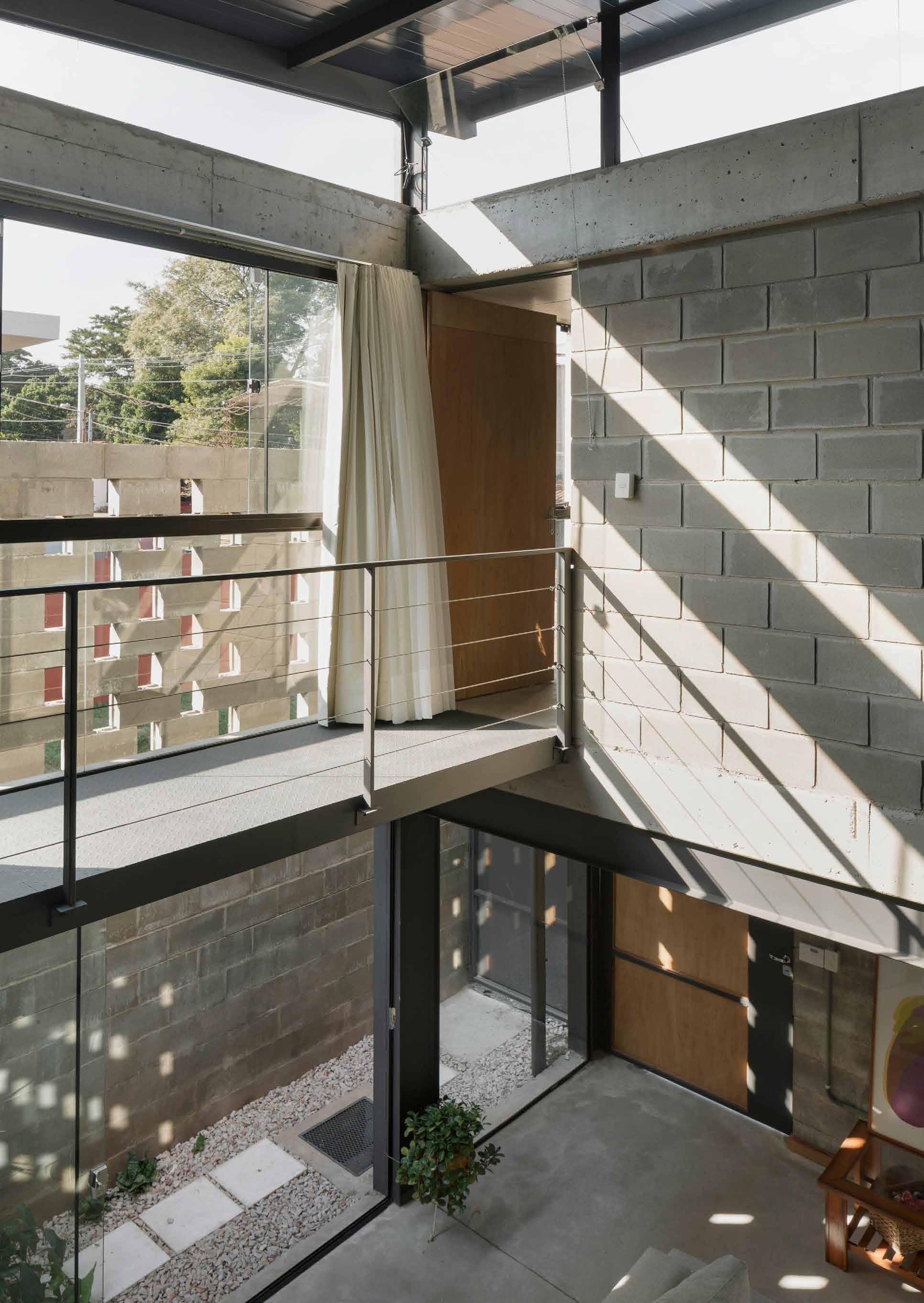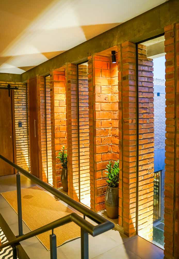 Estos espacios fueron ubicados según la orientación del terreno y las relaciones de vacíos verticales que descomprimen el volumen principal, para captar luz natural y optimizar la ventilación.