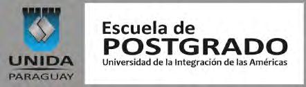 PROGRAMAS DE POSTGRADO FORMÁ PARTE DE LA MAYOR RED DE PROFESIONALES Sede Asunción 021 288 9000 Int. 220 0972 377 705 0972 377 712 0972 377 688 Filial Ciudad del Este 061 504 351 0972 184 140 0986 541 221 Filial Cambyretá 0985 394 618 0981 317 762 0986 566 126 Contactos: Doctorados - Administración - Ciencias Políticas y Sociales - Educación - Ciencias Jurídicas - Ciencias de la Educación - Salud Pública - Administración Pública con Énfasis en Gestión Gubernamental Especializaciones - Didáctica Universitaria - Didáctica Universitaria - a distancia - Planificación, Evaluación y Monitoreo para Directores y Supervisores - Nutrición Deportiva y Entrenamiento - Administración Hospitalaria - Kinesiología y Fisioterapia Deportiva - Derecho Constitucional - Gestión Integral de Seguros - Educación Basada en Competencias - Dirección Estratégica - a distancia - Administración de Negocios - a distancia - Bacteriología Clínica - Auditoría y Gestión Empresarial - a distancia - Dirección de Proyectos - a distancia Maestrías - Administración de Negocios - Salud Pública - Ciencias de la Educación - Relaciones Internacionales y Diplomacia - Ciencias Políticas y Sociales - Tecnología de la Información - Gestión de la Educación - Ciencias Jurídicas - Gestión Pública - Auditoría en Salud - Nutrición Deportiva y Entrenamiento - Gerencia de Proyectos Electromecánicos www.unida.edu.py