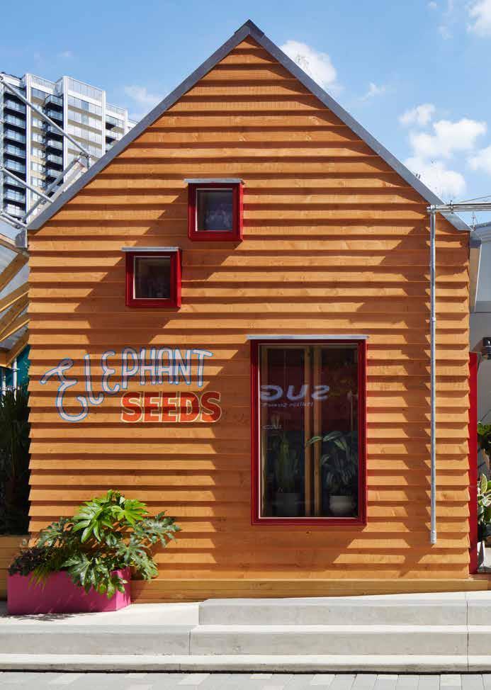 Situado frente a las vallas de construcción para el desarrollo de uso mixto dentro del plan maestro de Elephant Park, el proyecto complementa la terraza de cafés y restaurantes recientemente inaugurada en el sur de Sayer Street hasta que se complete la otra mitad de la calle principal.