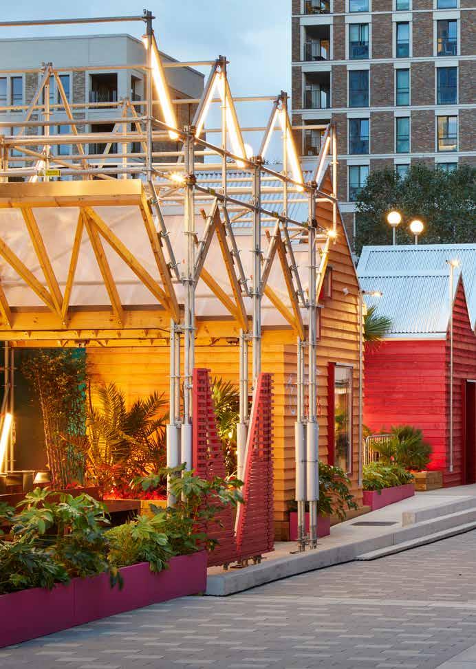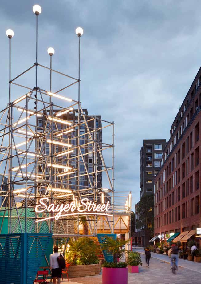 En un trozo de terreno de apenas cuatro metros de ancho, Sayer Street cuenta con la infraestructura necesaria para albergar toda la vida social que caracteriza a las calles principales más queridas de Londres. 97 ARQUI TECTURA INTER NACIONAL