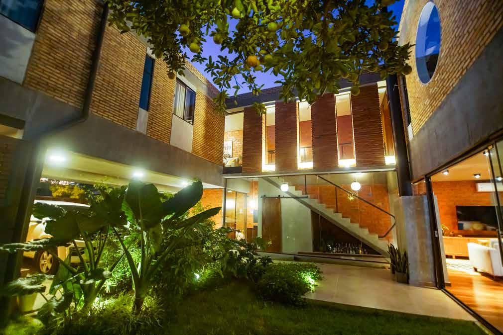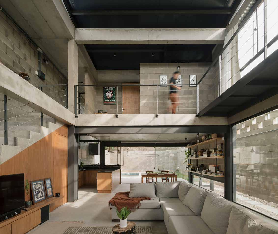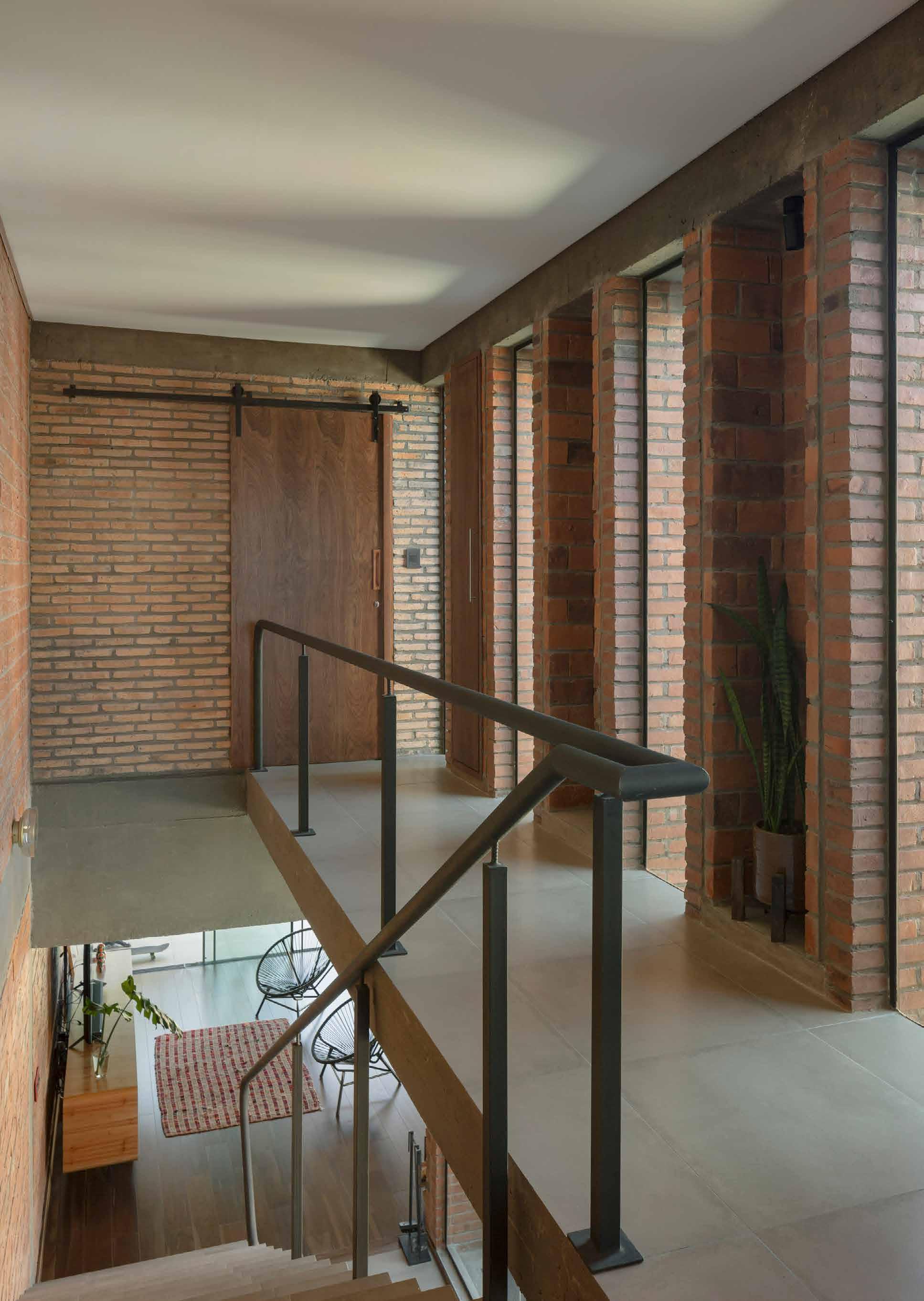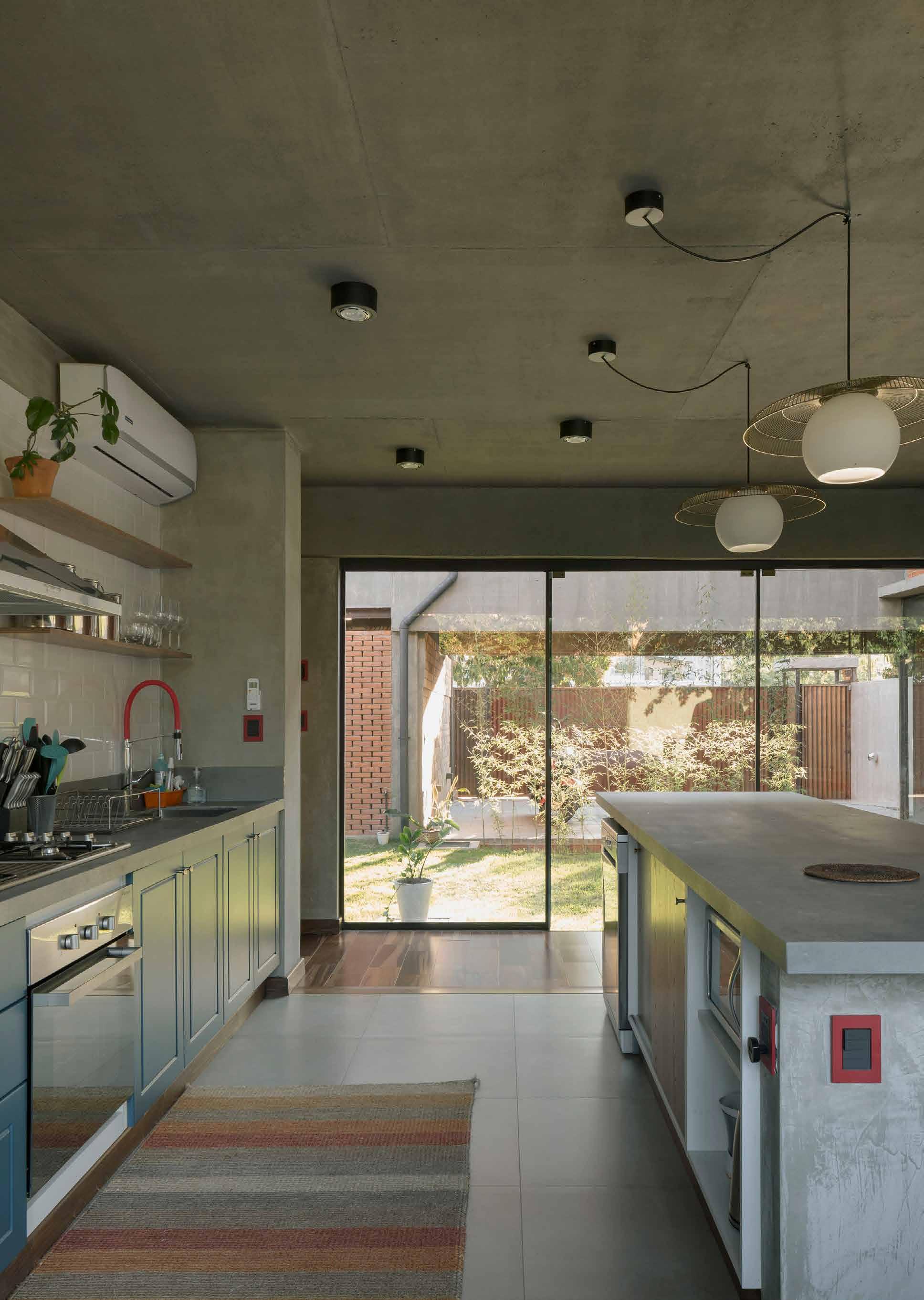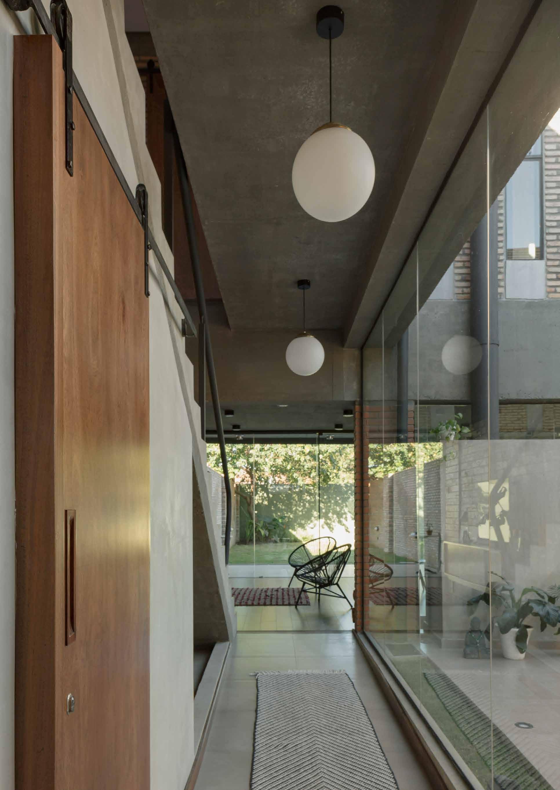 Logramos una integración espacial Gracias a la estructura de hormigón armado que eficientemente resuelve la estática de la casa pero a su vez es parte de la estética de la misma junto con el ladrillo a la vista. Los materiales que se utilizan se muestran tal como son, con sus imperfecciones y rastros de sus procesos constructivos.-