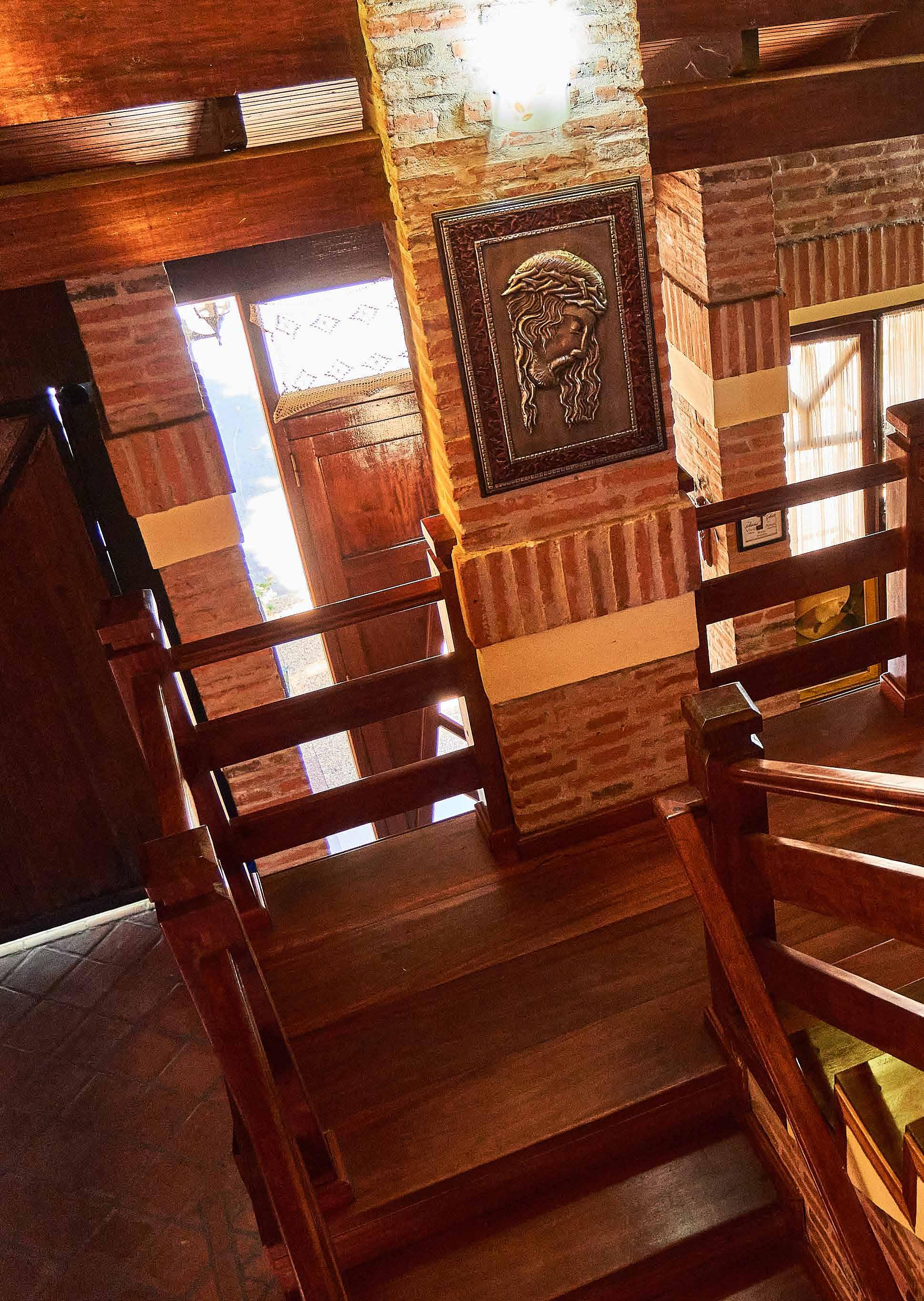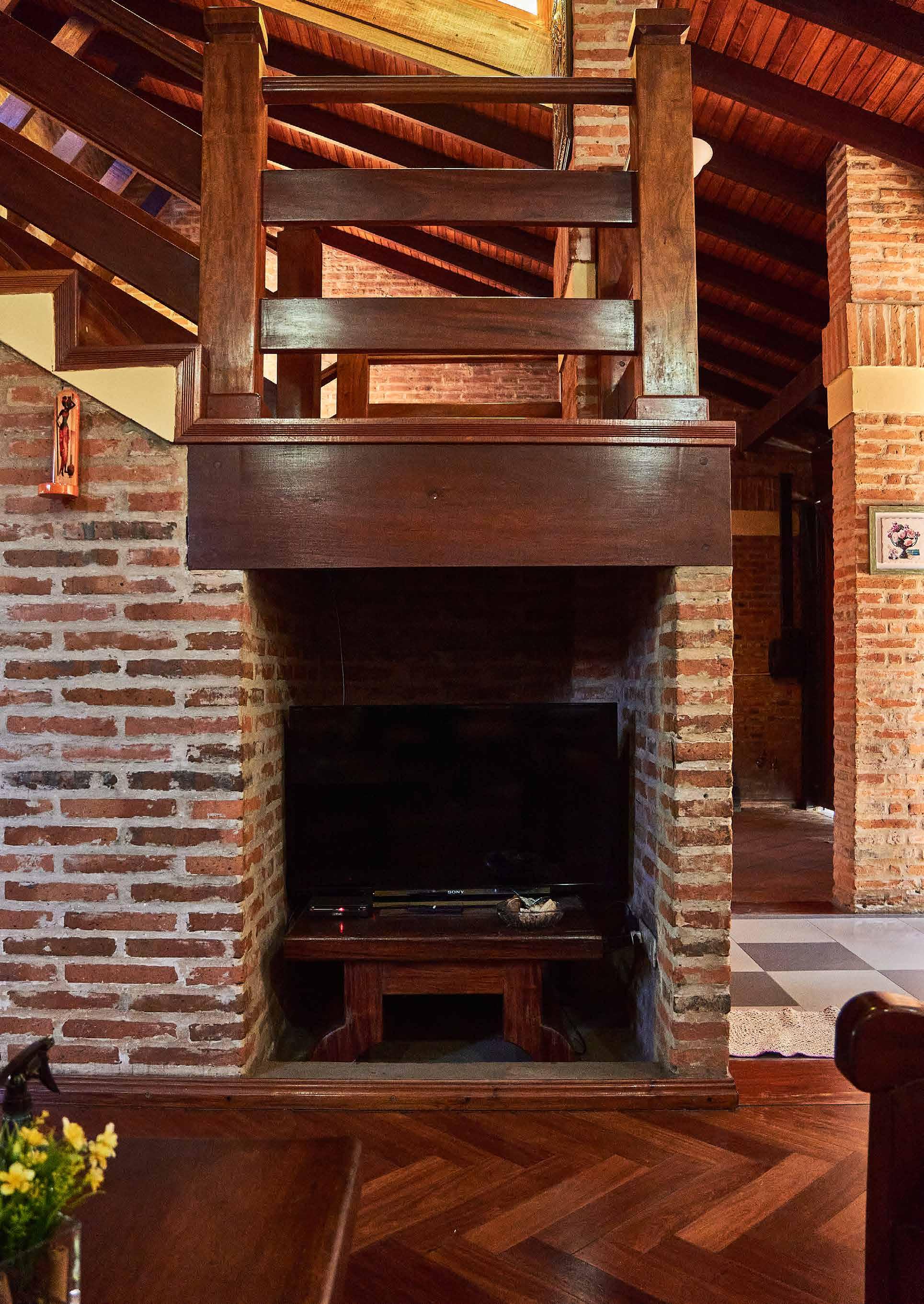 La estructura es de ladrillos, Hormigón Armado y Maderas, el piso en planta alta es de maderas. En frente tengo una plaza que es una celebración