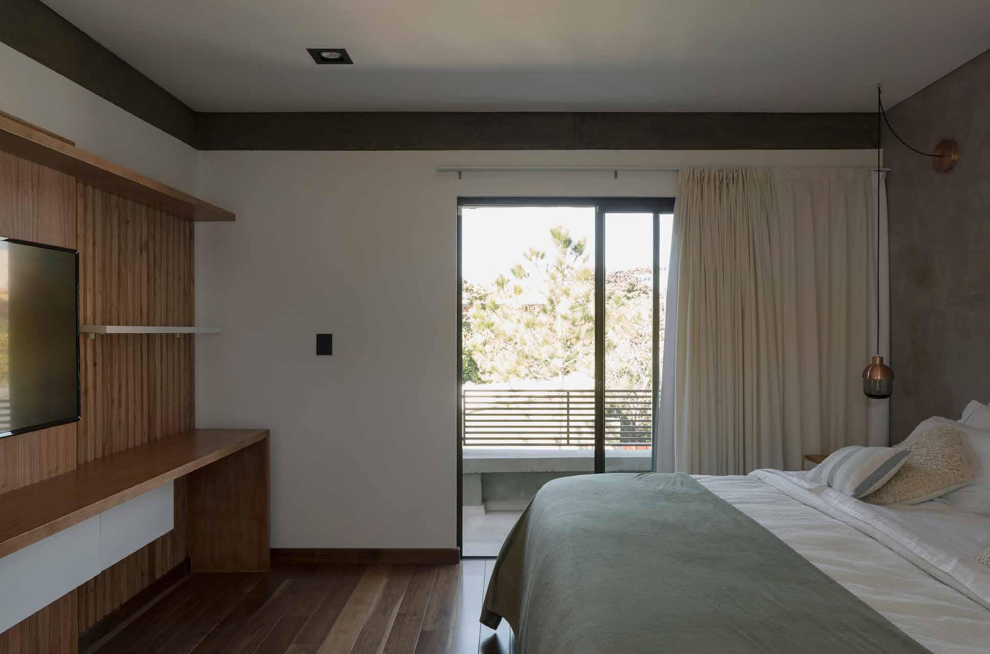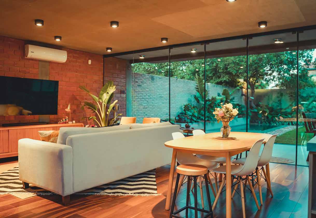 Los espacios de la vivienda GT están pensados para una vida integrada con el afuera, tratamos de tener una buena iluminación natural en todos los ambientes, buenas ventilaciones cruzadas que renueven el aire haciéndolo más sano y generar visuales que integren el interior con el exterior, que a través de las grandes aberturas además se puede lograr una integración espacial total, no solamente visual.