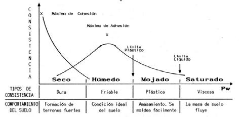Consistencia del suelo versus estados de humedad y tipo de materia prima.