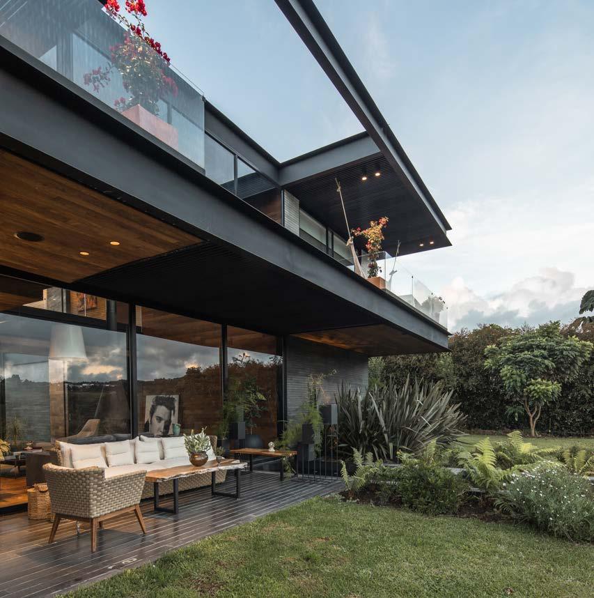La casa es un contraste formal de llenos y vacíos, de levedad y de firmeza asociadas a su materialidad. Los llenos, que definen la solidez de la estructura, son muros en mampostería revestidos por piezas de concreto gris oscuro y claro. La levedad de la estructura son los entrepisos metálicos que conforman el lenguaje y complementan el contraste de la materialidad al exterior. Al interior, pisos, cielos y revestimientos en madera natural configuran un espacio habitable cálido, donde los usos domésticos están acompañados de elementos naturales que revisten los planos horizontales y verticales de la casa. Al exterior, la naturaleza local sirve como paisaje que integra la vegetación, el agua y las visuales con la materialidad, los colores y los usos de la casa.