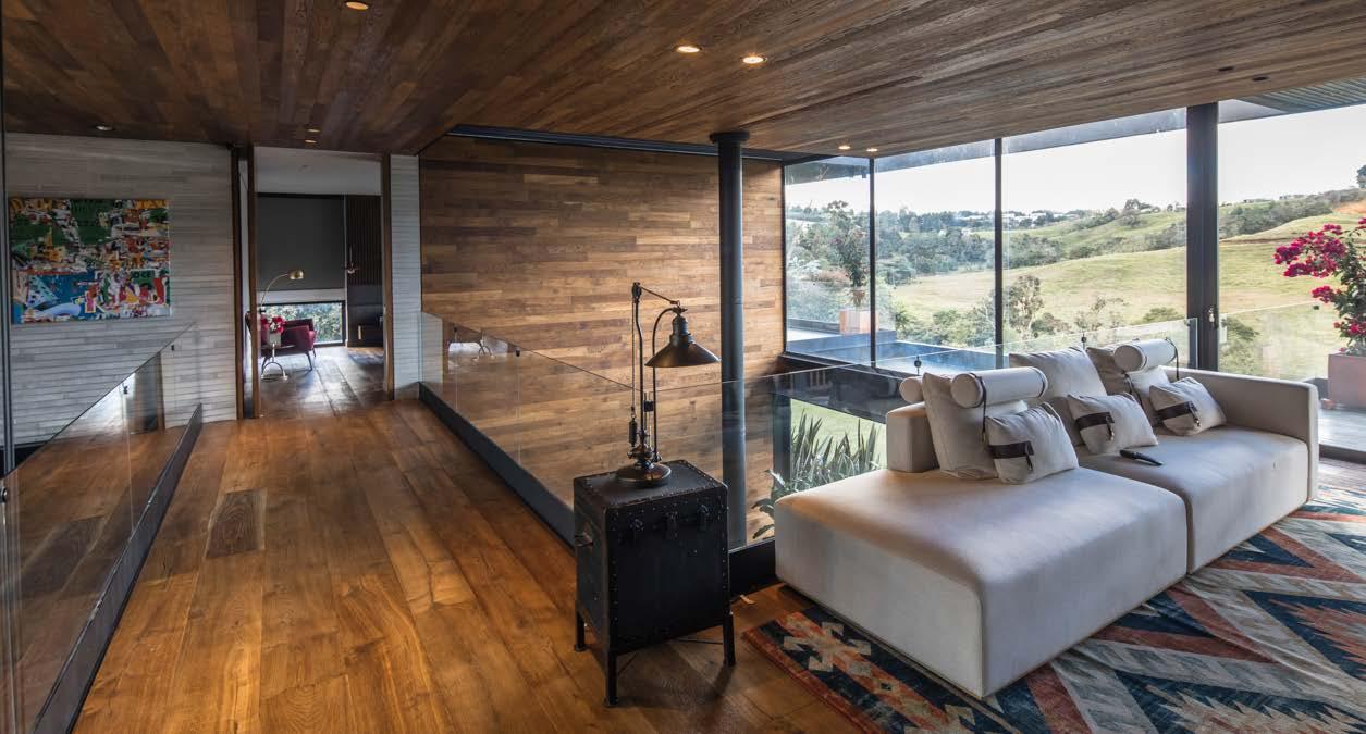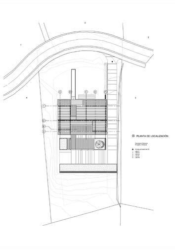 En lo alto de una colina, la casa se integra con un paisaje natural conformado por taludes, planicies, agua y vegetación local. Las visuales se orientan hacia el paisaje lejano, conformado por montañas y por la naturaleza del entorno.