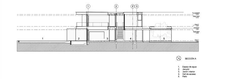 Es un conjunto de elementos sólidos dispuestos sobre el terreno y que soportan los elementos horizontales superiores. Este lenguaje del contraste entre el lleno y el vacío, lo natural y lo intervenido, lo sólido y las transparencias, configura una volumetría articulada por los vacíos, por los usos domésticos y por la relación entre lo vertical y lo horizontal.
