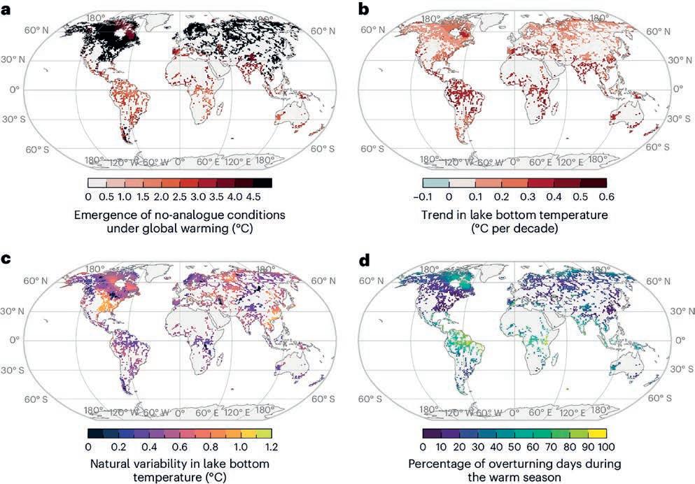 Um estudo recente publicado na Nature Geoscience por uma equipe internacional de limnologistas e modeladores climáticos revela que, se o aquecimento antropogênico atual continuar até o final deste século, os lagos em todo o mundo provavelmente experimentarão um aquecimento superficial e subterrâneo generalizado e sem precedentes, muito além do alcance do que encontraram antes.