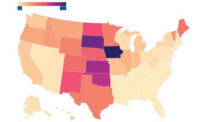 Os estados com a maior percentagem de energia eólica nas suas redes eléctricas são também principalmente estados republicanos.