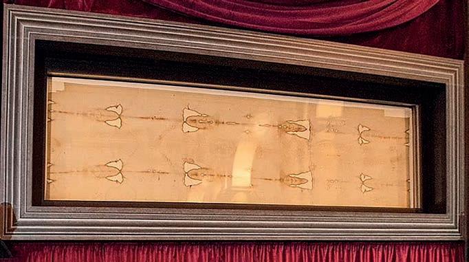 Também conhecido como Santo Sudário, ele traz uma imagem tênue da frente e de trás de um homem barbudo, que muitos crentes acreditam ser o corpo de Jesus milagrosamente impresso no tecido.