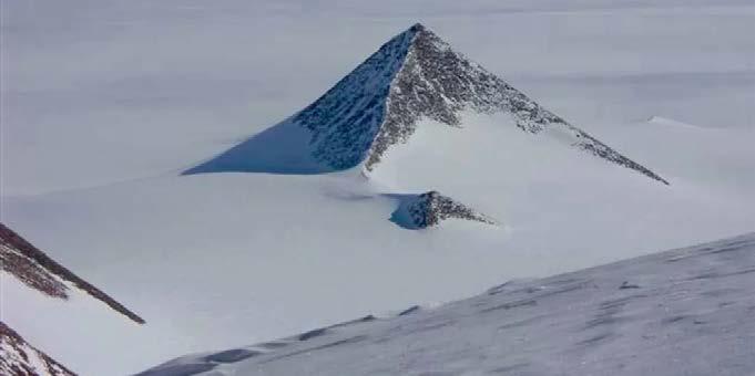 A montanha sem nome nas montanhas Ellsworth, em forma de pirâmide na Antártida se tornou famosa na internet em 2016. Coordenadas: -79.9774614356392, -81.95892707235716. A montanha parece uma pirâmide feita pelo homem