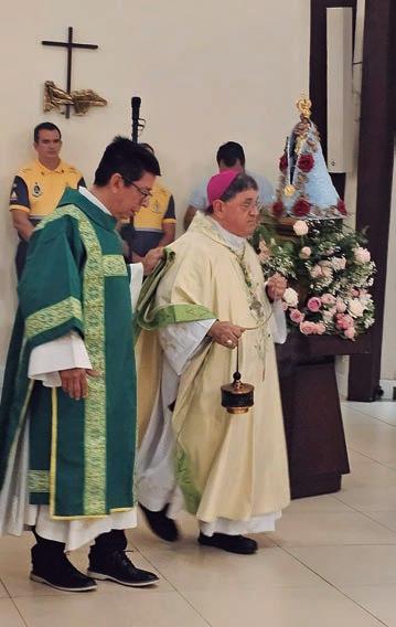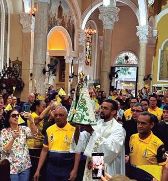 A Imagem Peregrina de Nossa Senhora de Nazaré adentrando a Igreja de Santa Catarina de Sena para a missa de encerramento celebrada pelo Bispo Enrique Delgado