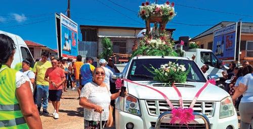A berlinda na paróquia São Martim de Porrès em Caiena (Guiana Francesa) de onde saia a procissão