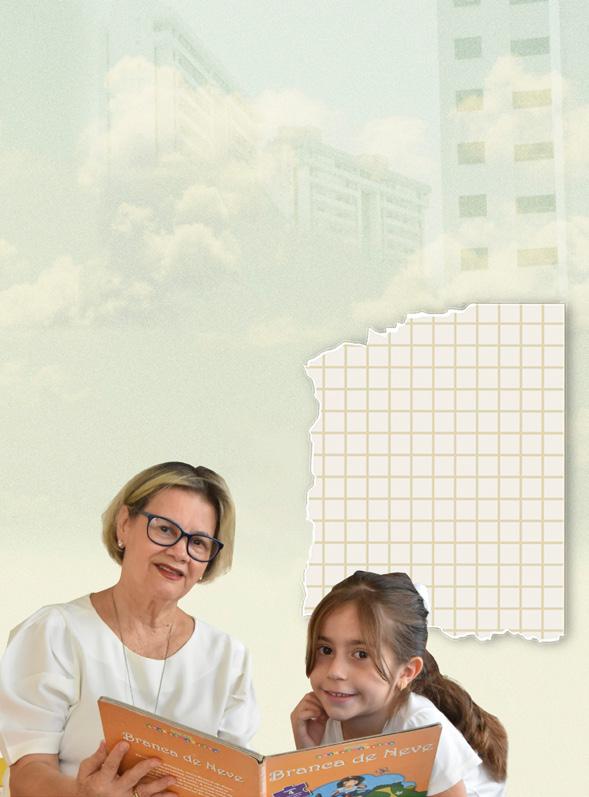 Enquanto fotografamos as duas gerações para a capa, dona Lia Senna lê e se conecta com Maitê: a leitura tem o poder de nos apresentar às outras épocas e também ao amanhã. “Há inúmeros aspectos do passado que nos inspiram, e sou grata por ser vizinha dos meus netos e de crianças lindas como Tetê, linda e muito esperta”, comenta ela, que há três anos, ao lado do esposo José Senna, vive encantada com a tranquilidade e infraestrutura do local. “Só desejo que o futuro seja generoso com ela e os amiguinhos. Que saibamos cuidar do nosso bairro com esmero para eles acessarem o que há de melhor, que é esse clima gostoso e acolhedor”, pede emocionada a mãe de Ana Karina e João Victor, e vovó de João Pedro e João Marcelo.