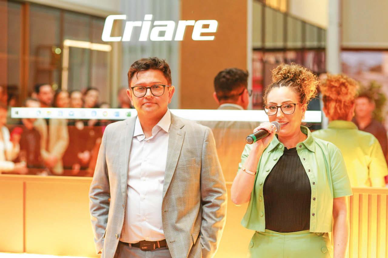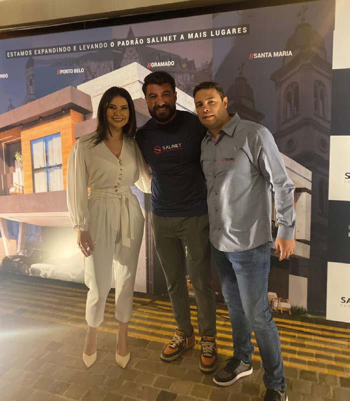 A casa showroom da Construtora Salinet organizou uma recepção para convidados da empresa e o destaque do evento foi a presença do ícone do mercado imobiliário Ricardo Martins. Na foto: O casal Carolina Mattos e Francisco Almeida, sócios da construtora Salinet, e Ricardo Martins, no evento.