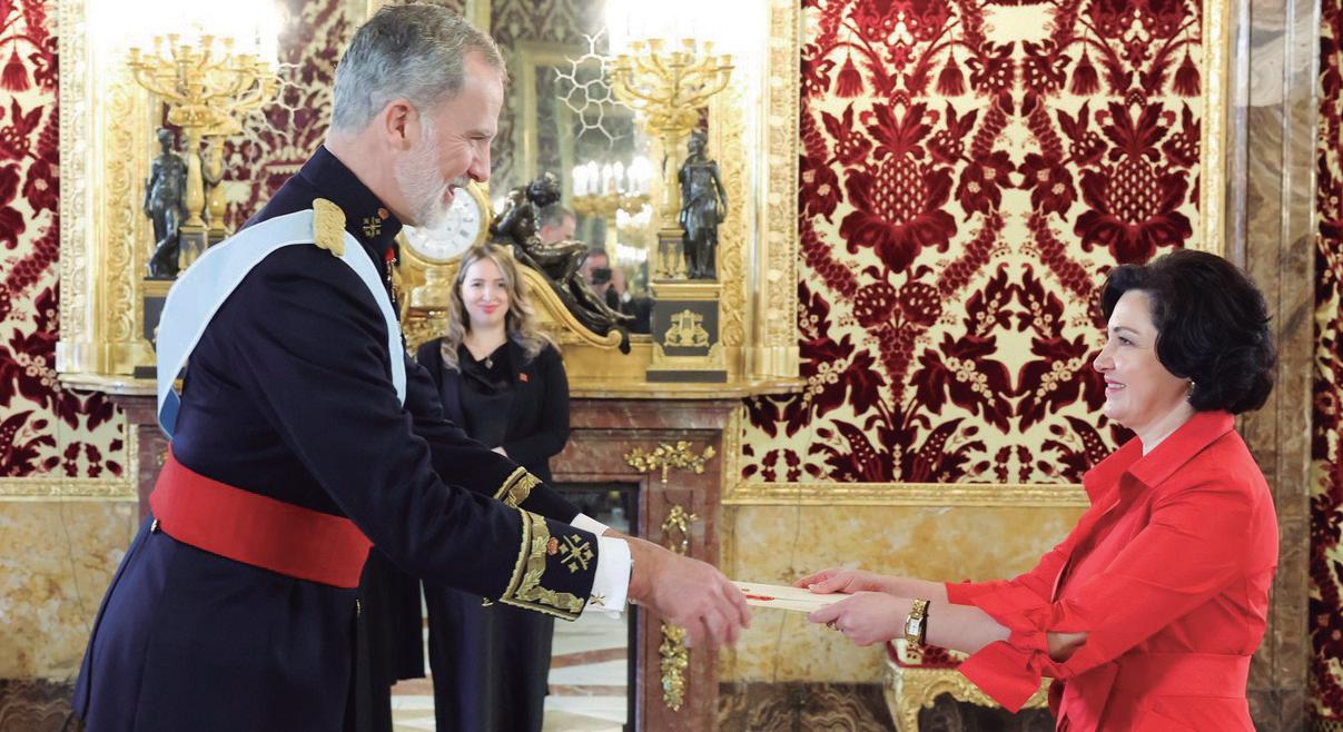 Su Majestad el Rey recibe en el Palacio Real de Madrid las Cartas Credenciales de la embajadora de la República de Albania, Sra. Entela Gjika.