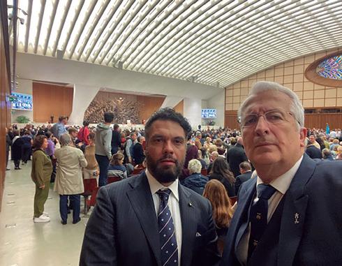Audiencia General en la Sala Pablo VI. D. Fabrizio Nucera, presidente de Croce Reale y D. Carlos Matilla.