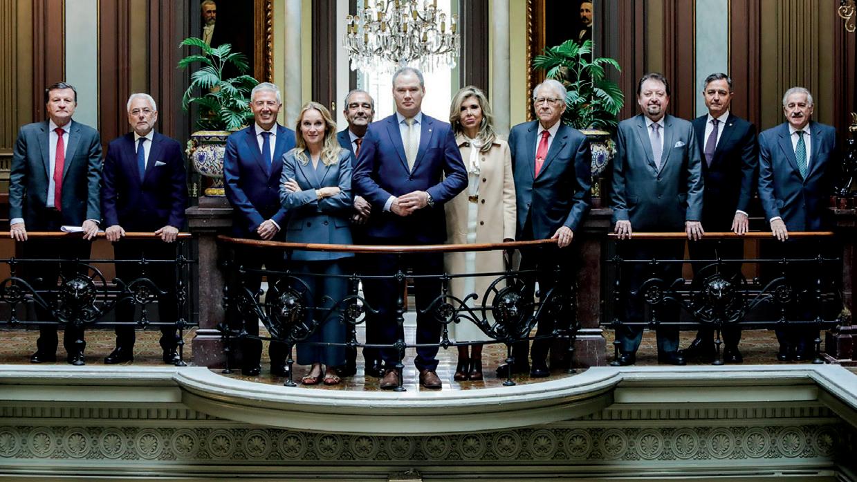 La Vocal, la Hble. Sra. Dª. Claudia Artemiza Pavlovich, Cónsul General de México; el Tesorero, el Hble. Sr. D. Francisco A. Granero, Cónsul General Honorario de Mónaco; el Vocal, el Hble. Sr. D. Enrique Juan Delgado Genta, Cónsul General de la República Oriental del Uruguay; el Vocal, el Hble. Sr. D. Javier Pérez Farguell, Cónsul Honorario de la República Federal Democrática de Etiopía. Tercera fila, de izquierda a derecha: El Vocal, el Hble. Sr. D. Pere Vicens Rahola, Cónsul General Honorario de Uzbekistán; el Vocal, el Hble. Sr. D. Ricardo Tobar Pascual, Cónsul Honorario de la República de Letonia; el Vocal, el Hble. Sr. D. Patricio Javier Garcés Ramírez, Cónsul General de la República de Ecuador.