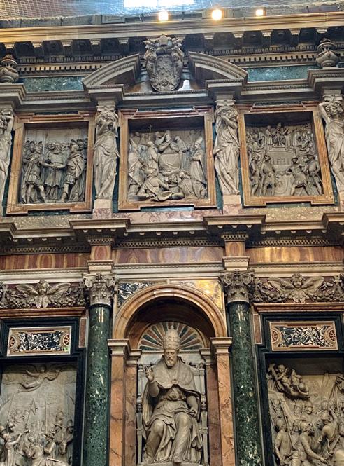 Detalle escultórico en la pared de la Capilla Paulina.