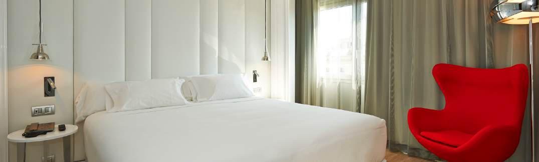 El hotel cuenta con 255 habitaciones, entre las que se encuentran 151 Superiores, 86 Premium y 18 Suites, todas decoradas en un estilo elegante y moderno. También dispone de habitaciones comunicadas ideales para familias. Además, las habitaciones de los pisos superiores gozan de vistas panorámicas de la ciudad. Desde 2024, como principal novedad y siendo el único hotel en la ciudad de Barcelona que ofrece el servicio, los huéspedes podrán encontrar en las habitaciones el servicio de Alexa, a través del cuál pueden solicitar a recepción cualquier servicio a la habitación (como una toalla extra o cepillo