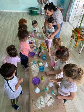 A escola promoveu duas atividades especiais: uma visita à Reserva Particular do Patrimônio Natural (RPPN) Chácara Edith e uma experiência de exploração, ao observar, tocar, sentir e experimentar a farinha.
